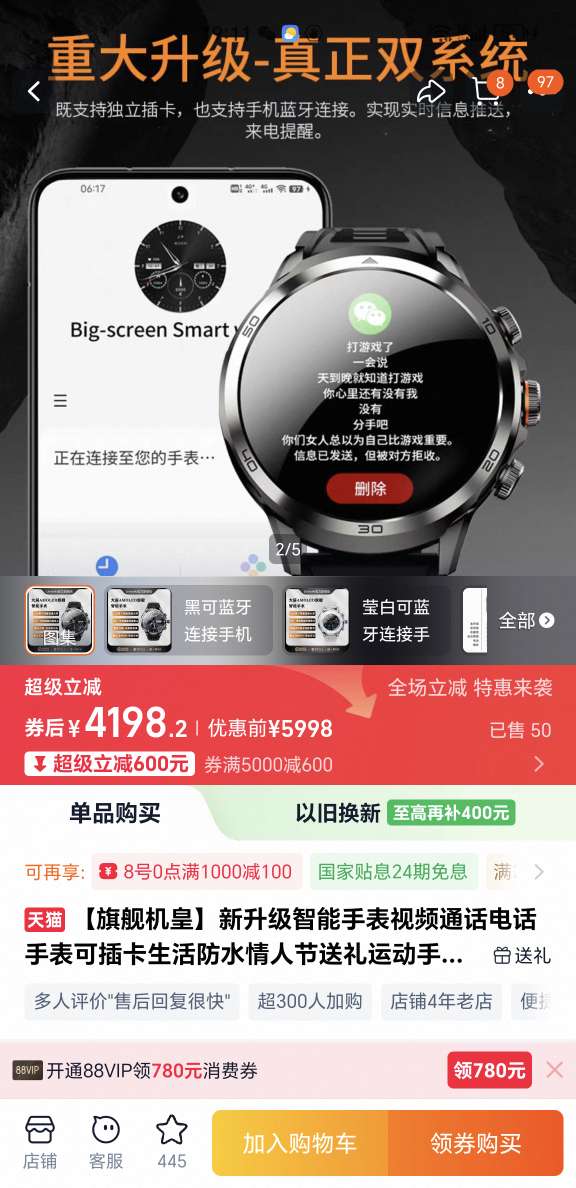 四千买的智能手表 很少使用成色不错 可以下app玩抖音玩游戏插卡64g 便宜出了 99新