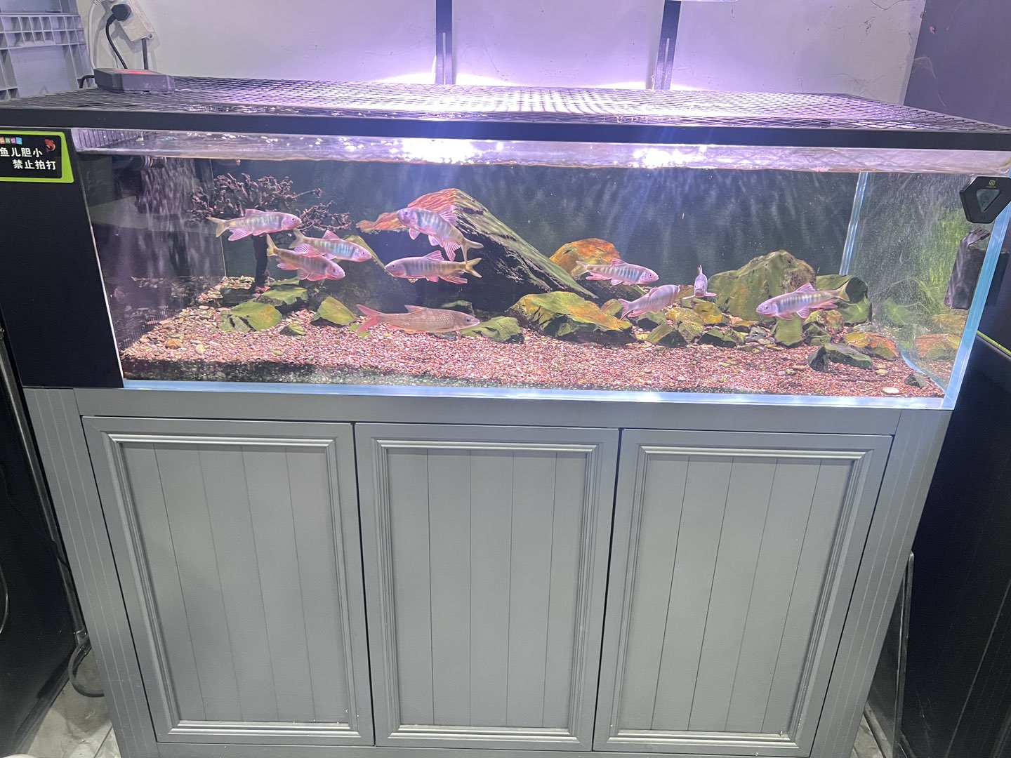 150×70×40溪流缸,使用不到一年时间,基本95新,鱼缸+乐迪灯+加热棒+造浪泵,滤材,花了差不多1万,现在3888出售,上面定做的隔网可拿下来