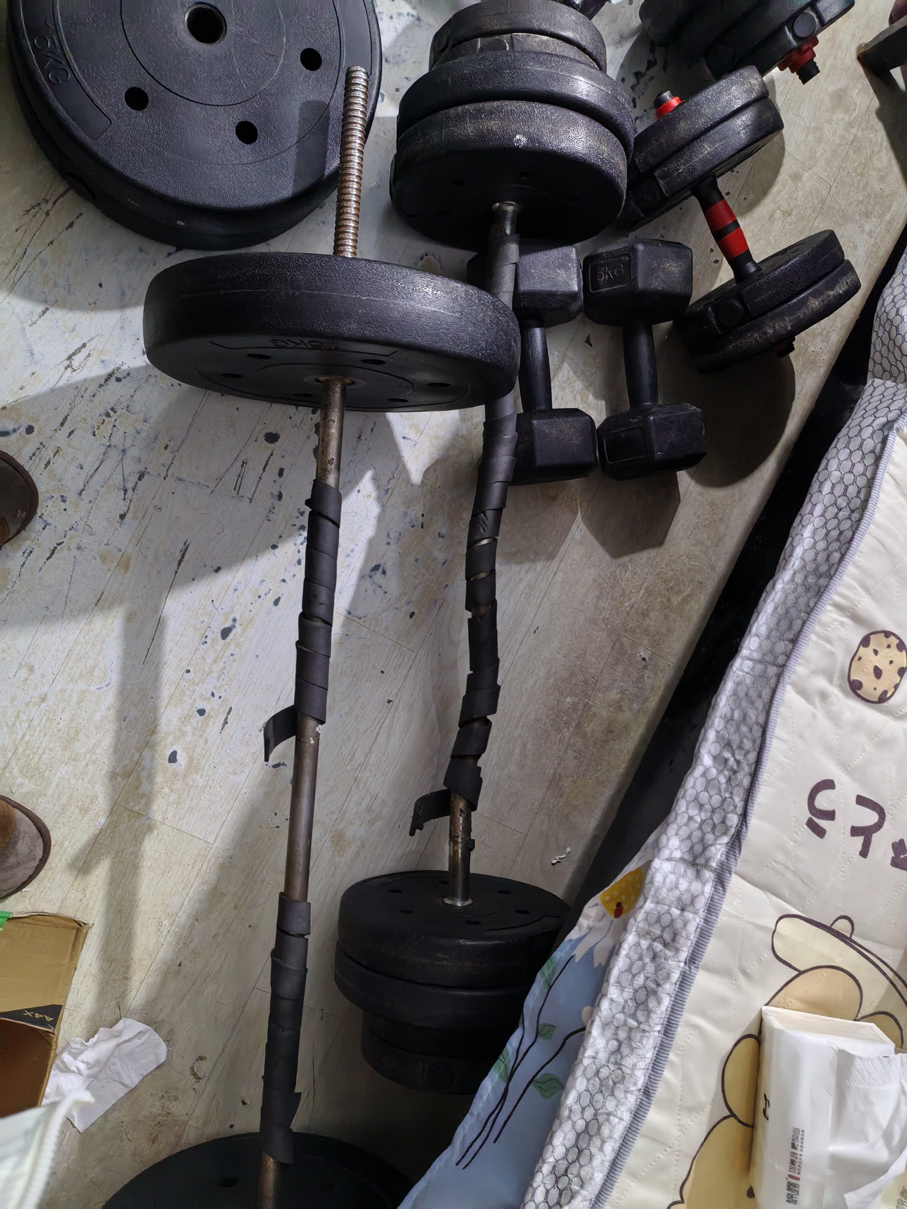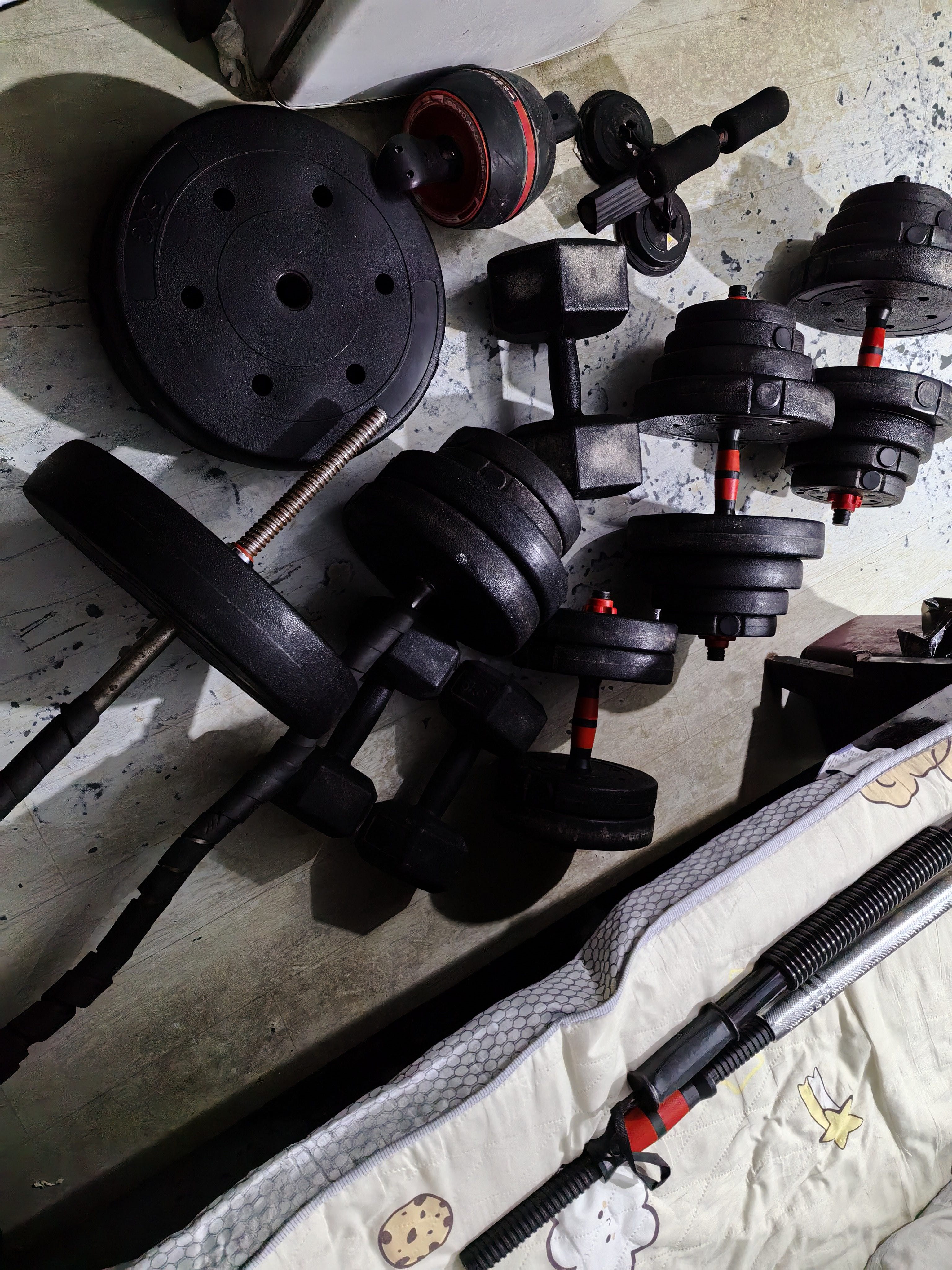 有没有喜欢健身的朋友现处理杠铃,哑铃之类的健身器材,200全部处理了89成新,需要的朋友早点来捡漏哦……要自提哦……