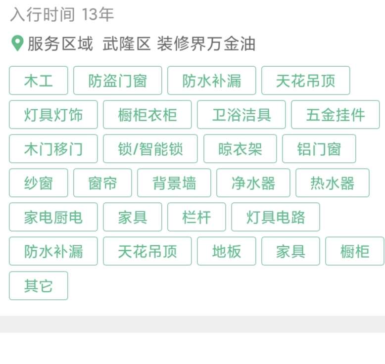 装修万金油,装修,维修,安装,补漏,装修疑难杂症 3分钟前更新 来自重庆 30浏览 重庆市武隆区 装修界万金油, 装修方面的装修,安装,维修, 装修疑难杂症