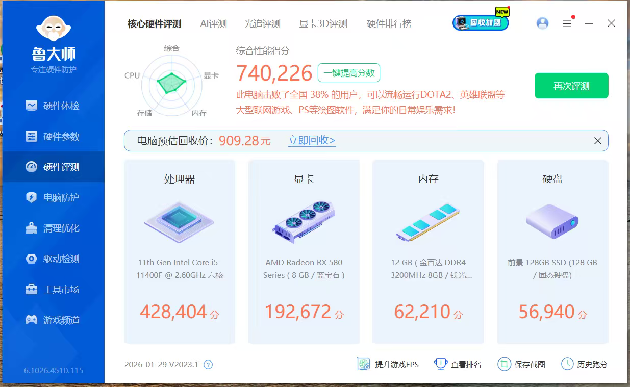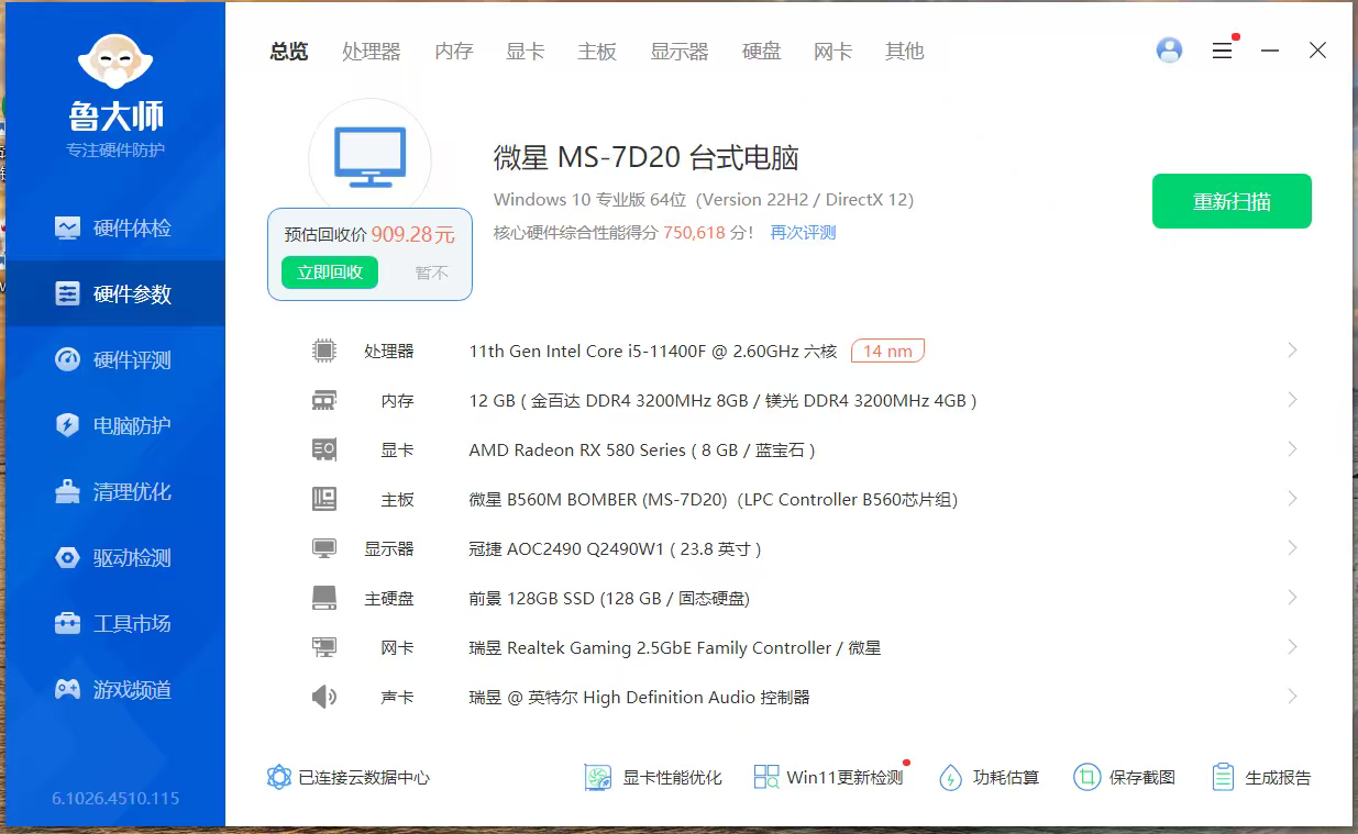 个人二手电脑用不上了出售,i5 1140f cpu,128g m2系统盘,512g固态盘。rx580 2304满血显卡,有灯光,安静,高负载温度也低。2000元,不讲价。接受才联系。白杨路自提。